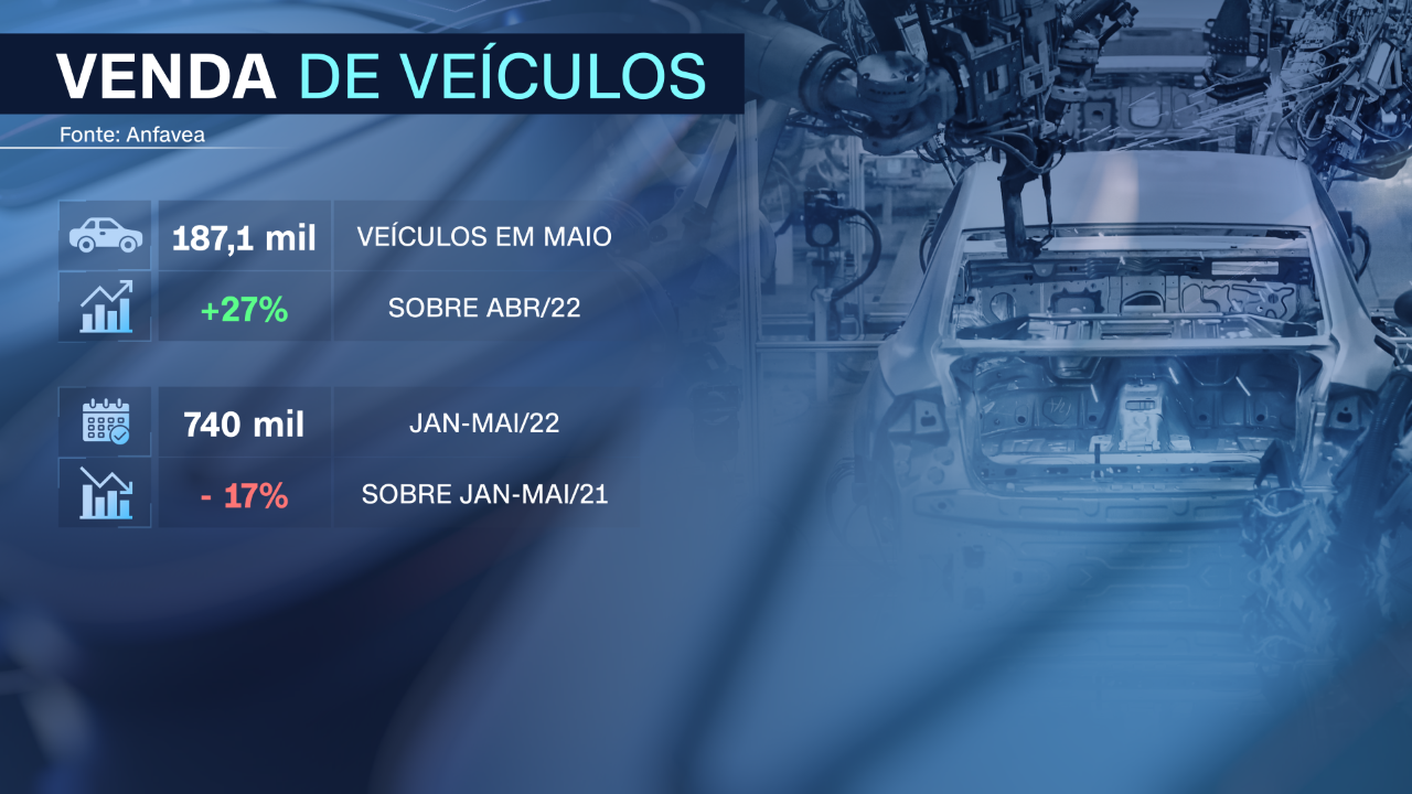 O setor acumulou em 2022 até maio 888,1 mil veículos produzidos e 740 mil vendidos no mercado interno, o que corresponde a quedas de 9,5% e 17%, respectivamente, frente aos cinco primeiros meses do ano passado.