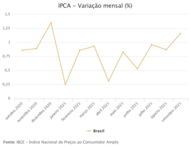 O Índice de Preços ao Consumidor Amplo (IPCA) — que mede a inflação oficial do país –, foi de 1,16% em setembro ante 0,87% no mês anterior, informou o Instituto Brasileiro de Geografia e Estatística (IBGE) nesta sexta-feira (8).