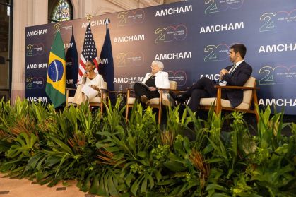 O encontro aconteceu na Sala São Paulo, região central da capital paulista, em um evento promovido pela Amcham — Câmara Americana de Comércio para o Brasil.
