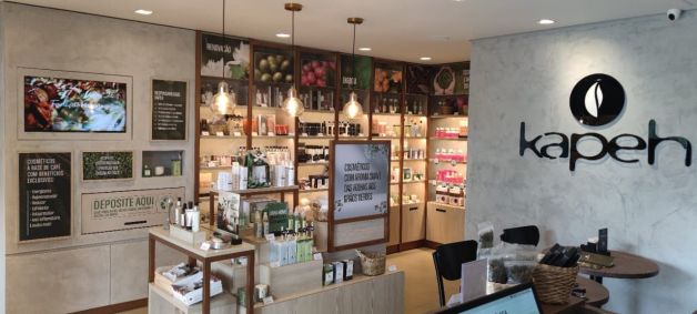 A proposta de unir a experiência de degustação ao teste dos produtos de beleza é replicada em lojas de shopping e lojas de rua, além de quiosques de menor proporção - todos modelos disponíveis a franqueados da Kapeh.