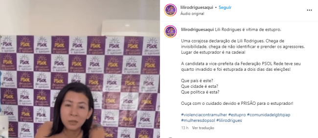 "O ataque a Lili é um ataque a todas as mulheres. Precisamos unir esforços para eliminar a violência de gênero em nossa sociedade", concluiu a nota.