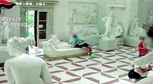 A Polícia da Itália divulgou nesta terça-feira (4) imagens de uma câmera de segurança que mostram um turista danificando uma escultura do século 19 de Antonio Canova. Ele quebrou um pedaço da obra ao se sentar nela para tirar uma foto.