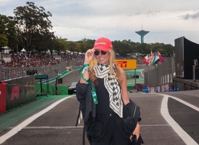 Adriane Galisteu, 52, registrou a sua volta ao Autódromo de Interlagos neste domingo (9) para acompanhar o GP de São Paulo de Fórmula 1.