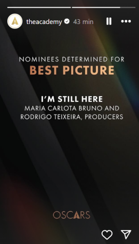 No Oscar, o prêmio de Melhor Filme é sempre atribuído aos principais produtores da obra. Até então, "Ainda Estou Aqui" era o único filme que ainda não havia definido seus representantes.
