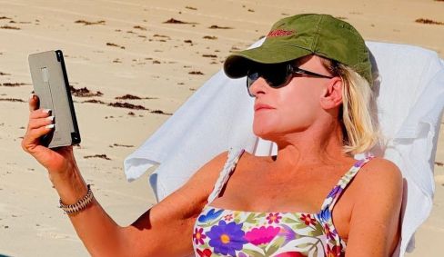 A apresentadora Ana Maria Braga, 75, do Mais Você, da TV Globo, compartilhou novas fotos aproveitando dias de descanso na Bahia com o namorado, Fábio Arruda. Nesta quinta-feira (6), ela mostrou que atualizou a leitura enquanto tomava sol em uma praia.