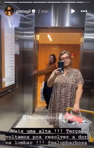 Já no domingo (3), a filha de Gilberto Gil retornou ao perfil no Instagram e celebrou o seu retorno para casa. "Mais uma alta! Terça voltamos para resolver a dor na lombar", explicou aos seguidores.