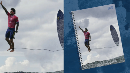 Após muitos pedidos de fãs, a foto icônica de Gabriel Medina na Olimpíada de Paris irá ganhar uma capa de caderno. Ao ser flagrado no ar durante uma competição de surfe, o registro do brasileiro também rendeu memes nas redes sociais.