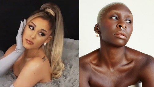 Grande também compartilhou um storie das flores que Erivo lhe enviou, que incluía uma nota: "'Rosa vai bem com verde. Parabéns, senhorita A, esse papel foi feito para você, estou ansiosa para compartilhar esta jornada musical contigo".