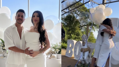 A influenciadora está grávida de 25 semanas. No Instagram, o ex-casal e a família mostraram a decoração do evento, feita toda na cor branca, com flores e bexigas, e o momento da descoberta do sexo, que foi por meio de papéis azuis que se espalharam pelo chão.