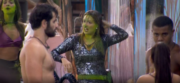 Enquanto discutia com a nutricionista na área externa da casa, a vendedora se dirigiu ao chuveiro para se limpar. Ainda assim, a sister seguiu falando com a mineira, que se afasta. No entanto, um sinal de atenção ecoa e Lucas Henrique lê o comunicado que aparece no monitor da casa.