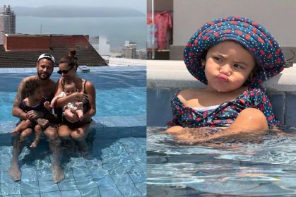Nas redes sociais, ela compartilhou um registro da família na piscina e escreveu: "Nossa manhã". Durante a tarde, ela também mostrou que levou as herdeiras para o teatro, para um espetáculo da Chapeuzinho Vermelho.