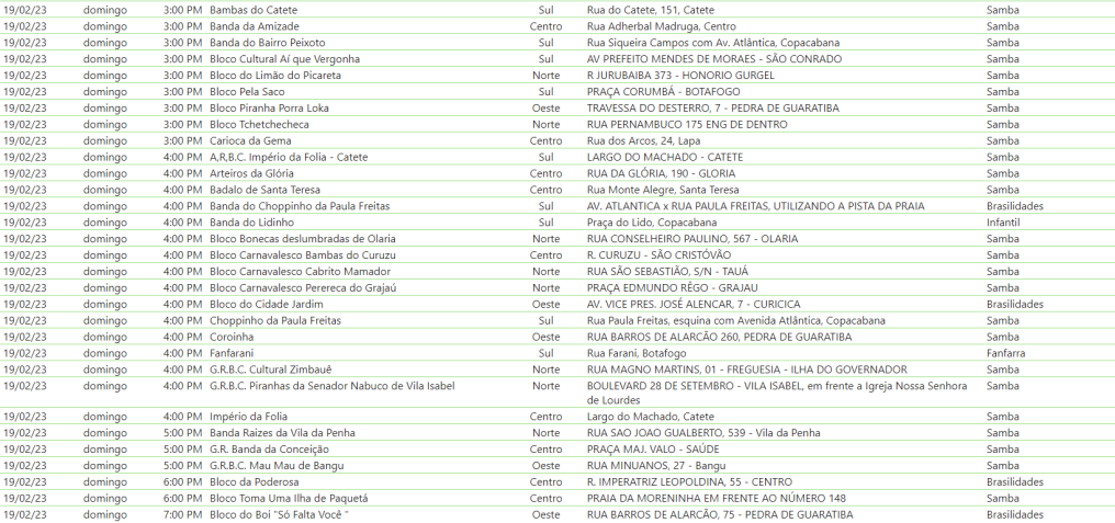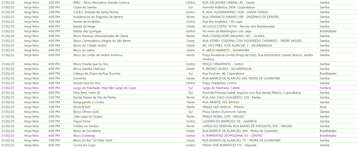 O "BI de Carnaval" pode ser acessado através deste link. A lista completa de blocos de rua que devem desfilar no Carnaval carioca está disponível abaixo.