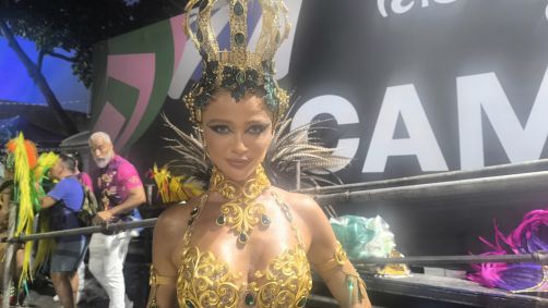 “Vamos ganhar, vamos pra cima, vamos com tudo, Salgueiro… E eu vou dar uma ensaiadinha rapidinho. Foi isso que pensei”, disse a modelo pouco antes de entrar na avenida com a escola.