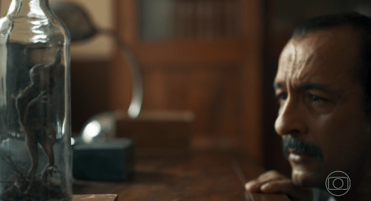 Enquanto o personagem vasculhava sua casa atrás da carta, Joana (Tereza Seiblitz) encontrou a garrafa com o cramulhão e acreditou que o amuleto atrairia coisas ruins para sua família.