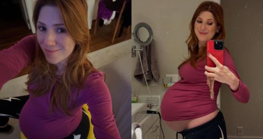 Nos registros, ela mostrou como está o atual tamanho de sua barriga, pouco tempo antes do nascimento do bebê.