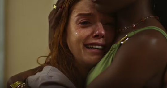 "Eu tô aqui, amiga. Eu tô aqui", diz Leo, enquanto Kami, que também foi demitida da Boaz, chora. A babá de Sofia e Marlon (Humberto Morais) a incentivam a ir à delegacia. "Aqui é um espaço seguro. Você pode parar quando quiser, respirar. Vamos no seu tempo, tá bem?", garante a inspetora. Pam (Haonê Thinar) e o ex, Ryan (L7nnon), demonstram empatia e preocupação, criando um ambiente para que ela se sinta acolhida após o trauma.