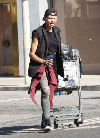 Loni foi fotografada na terça-feira (29) carregando seus pertences em um carrinho de compras, usando um boné com os cabelos curtos e a mão visivelmente machucada.