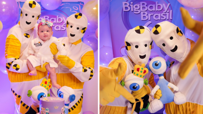 Ex-BBBs Andressa e Nasser celebram 6 meses da filha fantasiados de Dummies