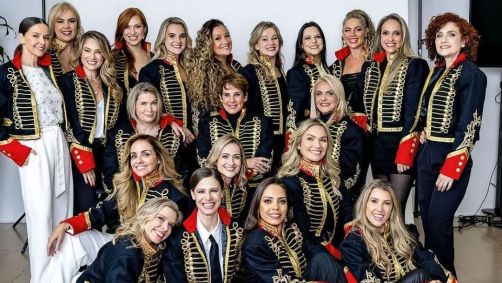 Andréia Veiga publicou uma foto da reunião de ex-paquitas, na qual mais de 20 das ex-assistentes de palco do programa da Xuxa aparecem com sua roupa característica.