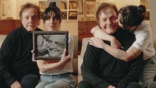 O vídeo faz parte das comemorações para marcar os 70 anos do cantor, que faz aniversário em novembro. Fábio Jr e Cleo -- fruto de seu relacionamento com Gloria Pires -- aparecem olhando fotos antigas e recriando as poses no sofá de casa.