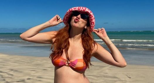 A apresentadora Dani Calabresa, 43, que está grávida de seu primeiro filho com o publicitário Richard Neuman, exibiu nesta terça-feira (25) o crescimento da barriga durante uma viagem ao Nordeste.