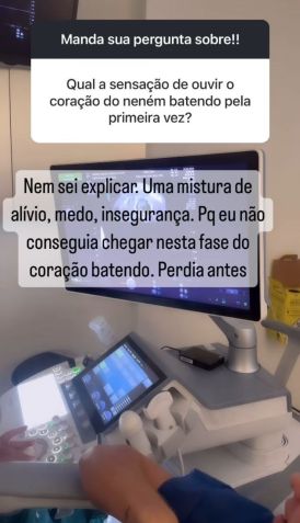Respondendo a um dos questionamentos, ela dividiu a sensação de ouvir os batimentos cardíacos do bebê pela primeira vez.