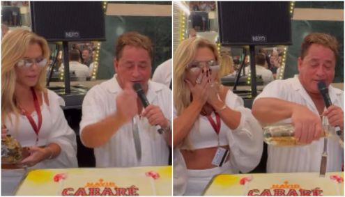 O cantor Leonardo, 62, chamou atenção nas redes sociais, nesta quarta-feira (19), ao publicar um vídeo jogando cachaça num bolo para comemorar o primeiro dia de seu cruzeiro temático, o Navio Cabaré.