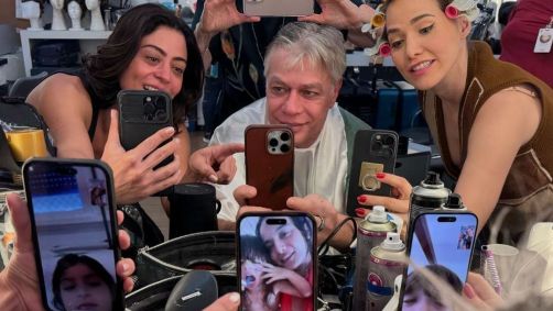A atriz Lilia Cabral capturou um momento fofo nos bastidores da gravação da nova novela das 6 da TV Globo, "Garota do Momento": Carol Castro, Fábio Assunção e Letícia Colin fizeram chamadas de vídeo com seus respectivos filhos ao mesmo tempo enquanto passavam pela maquiagem.