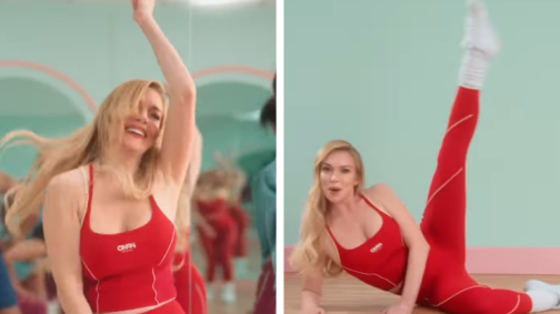 A atriz Lindsay Lohan, 38, impressionou os seguidores com cenas de elasticidade em um novo comercial de roupas de ginástica.