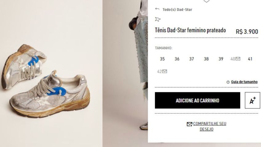 Indo além do valor, o que chama atenção no sapato é justamente a aparência detonada da peça que segue a tendência do "trashion", que seria uma combinação do trash (lixo) e fashion (moda).