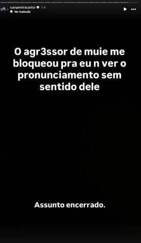 "Agressor de mulher me bloqueou para eu não ver o pronunciamento sem sentido dele", afirmou o cantor. "Assunto encerrado", disse Luan.