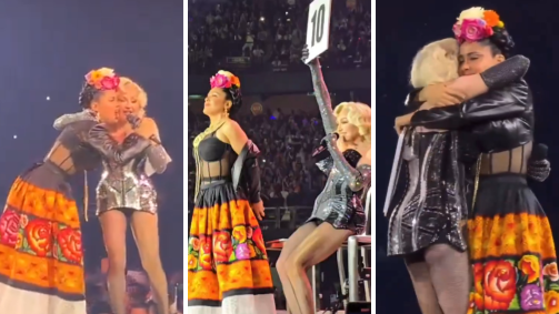 Nesta sexta-feira (26), Madonna convidou a atriz Salma Hayek para participar de sua apresentação no México. A artista, conhecida pelo filme "Frida", de 2002, subiu ao palco com um figurino que fazia menção à pintora.