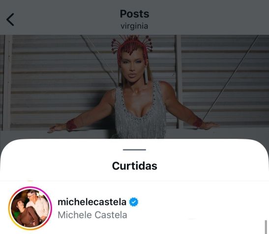 A mãe da Boiadeira deixou uma curtida na foto de Virginia durante ensaio da Grande Rio, escola de samba em que ela é rainha de bateria. Michele também segue a influenciadora.