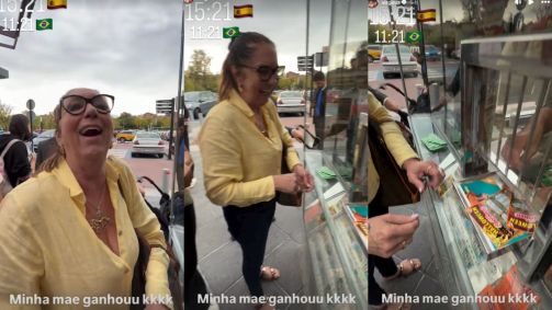Em seguida, Margareth descobre que ganhou três euros, um valor equivalente a R$ 18,61. "Nossa, mãe, você está com sorte no jogo, hein", declara a influenciadora, em tom de brincadeira.
