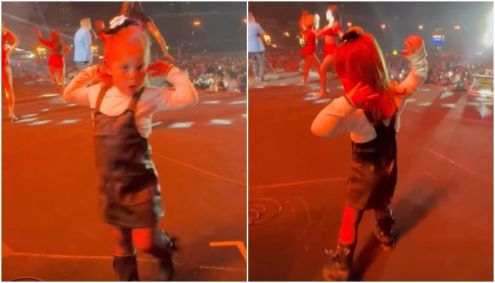 A pequena Maria Flor, 2, filha do cantor Zé Felipe, 27, e da influenciadora Virginia, 26, chamou atenção do público ao dançar no palco durante show do avô Leonardo, 62, em Goiânia, na noite de sábado (9).
