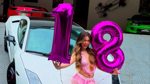 Melody completa 18 anos e posa com balões em frente a carro de luxo