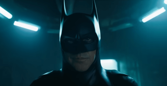 O trailer também é a primeira visão completa do retorno de Keaton como Batman, aparecendo em seu icônico macacão.