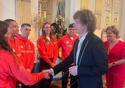 Nos registros, Mick Jagger aparece conversando com os atletas: "Maravilhoso encontrar e apoiar o time do Reino Unido".