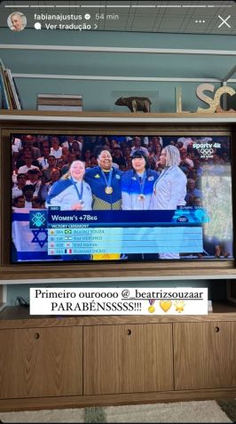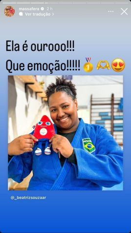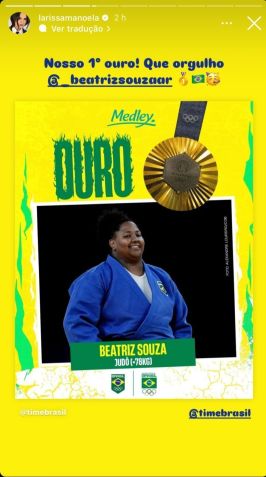 A madrinha do Time Brasil também celebrou a medalha da "nossa campeã". Em sua legenda, ela cita: "O primeiro ouro do Brasil em Paris é de uma mulher, é do nosso judô!".
