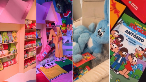 Um dos itens era um livro personalizado, em que cada criança convidada fazia parte de uma história em quadrinhos da Turma da Mônica. Garrafinha, lancheira, pelúcias e mochilas personalizadas do tema também foram entregues às crianças no final da festa.