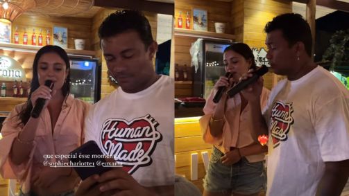 Nos vídeos que circulam nas redes sociais, o casal aparece em clima de romance cantando "Sorte", de Caetano Veloso e Gal Costa, e "Baby", também da cantora. Veja os vídeos abaixo.