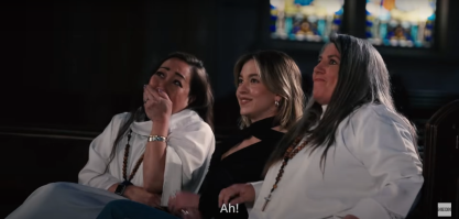 Sweeney, que precisou se deter para não falar um palavrão dentro da igreja, foi acalmada pelas duas pastoras: "Nós vamos rezar por você".