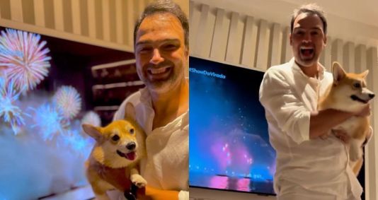 Tadeu Schmidt passa virada dentro de casa para acalmar pet do barulho dos fogos