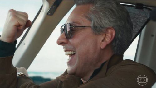Ao ser denunciado para a polícia por desvio e lavagem de dinheiro enquanto presidia a TCA, o empresário e a esposa, Leila (Carolina Dieckmmann), tiveram uma corrida contra o tempo para chegar ao jato particular e fugir da polícia. No ar e celebrando que conseguiu escapar, o vilão fez a famosa banana para o Brasil, como tão ansiado pelos espectadores.