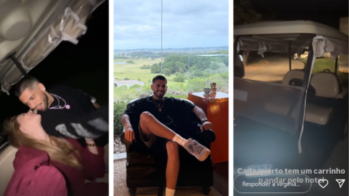 O casal mostrou, através dos stories do Instagram, detalhes da hospedagem, situada em uma vila de luxo da cidade. O quarto onde estão ficando conta com ambiente externo amplo e ambiente interno equipado com sala de estar, cozinha, lareira e piscinas privativas.