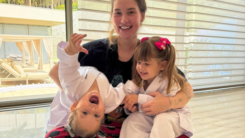 No material de Maria Flor, a menina de 1 ano aparece em uma colagem floral. Já Maria Alice, 3, surge em meio a asas de borboleta. Brincando, ela escreveu na legenda uma risada: "Muito bom".
