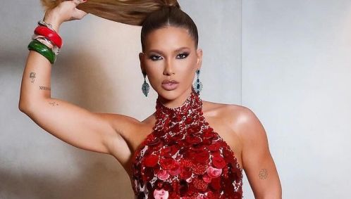 A influenciadora Virginia Fonseca, 26, usou um look cheio de lantejoulas e pedrarias vermelhas, nesta terça-feira (14), para segundo ensaio da Acadêmicos do Grande Rio.