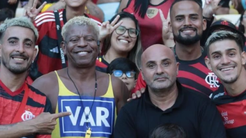 O sósia de Sampaoli também compareceu ao Maracanã para acompanhar de perto a vitória do Flamengo sobre o Coritiba. Na arquibancada, "Sampaoli da Torcida" esteve ao lado de sósias do meia Arrascaeta e do atacante Pedro.