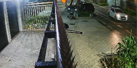 Uma câmera de segurança mostrou o momento em que o ex-jogador de futebol Fred Guedes, de 34 anos, é rendido por criminosos, em Ipanema, na zona sul do Rio de Janeiro. Pelas imagens é possível ver quando o jogador chega de carro no prédio em que mora, já de madrugada.