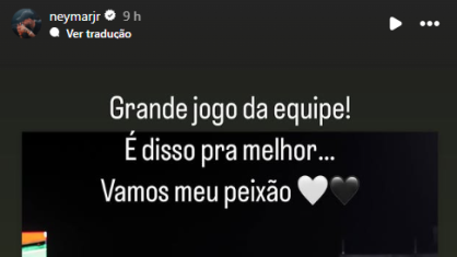 Pelo Instagram, Neymar publicou que foi um “grande jogo da equipe! É disso pra melhor…vamos meu peixão”.